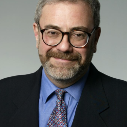 A headshot of a man wearing an orange bowtie and black suit jacket.